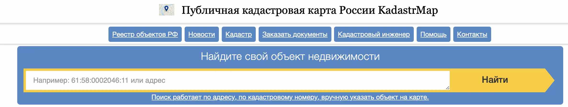 - 🔍 Введите кадастровый номер или адрес в верхней части экрана