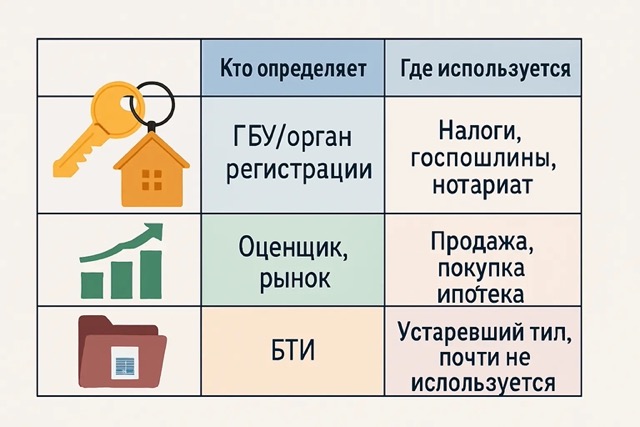 Чем отличается кадастровая стоимость от рыночной и инвентаризационной